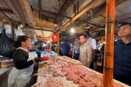 Wakil Presiden (Wapres) Gibran Rakabuming Raka berkeliling Pasar Induk Senen, Jakarta, Selasa, untuk meninjau aktivitas pasar tradisional sekaligus menyapa sejumlah pedagang dan mendengar keluhan-keluhan mereka secara …